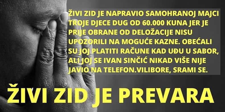 90% aktivista koji su bili sudionici obje deložacije gđe Fel više nisu aktivisti niti pristaše Živog zida. To su oni pošteni. Jednostavno im se duboko zgadio način na koji je živozidaško vodstvo na čelu s Pernarom, Sinčićem i Palfi iskoristilo gđu Fel, kao i sve druge koji su bili deložirani prije i poslije nje. Ostali su ogromni troškovi deložacija uvećani troškovima interventne policije i nebrojene prekršajne prijave aktivistima – a ništa od toga nije platio živozidaški prevarantski trio, koji se sada u proširenom sastavu priključio na državnu sisu i proračun, ubirući ogromne plaće za svoj daljnji nerad, zabušavanje i mazanje očiju ovršenom puku.