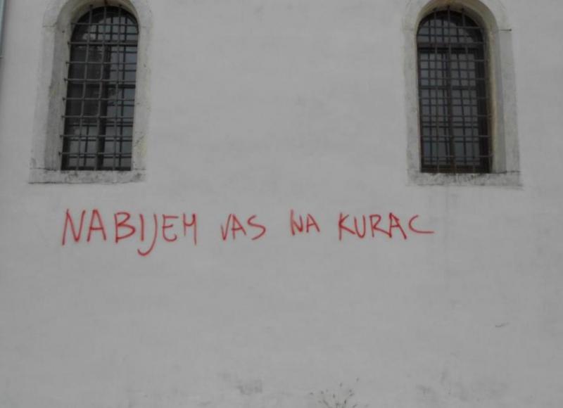 Radi se o grafitima kojima se iskazuje neprijateljstvo prema Crkvi, crkvenim velikodostojnicima, političkim strankama kao što je “HDZ=lopovi”, a grafit “Nema Boga” i neki sotonistički grafiti upereni su protiv kršćanstva.