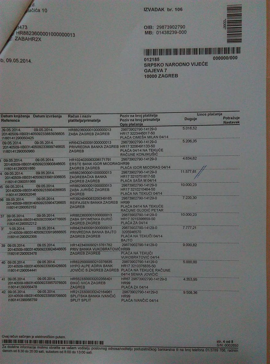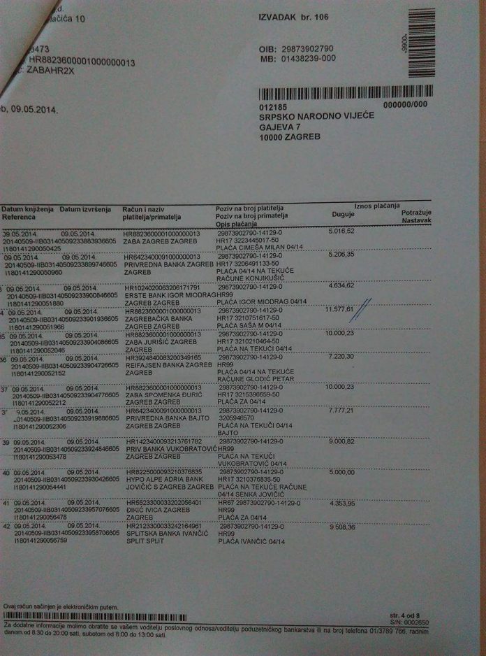 Tek neki dan smo dobili izvješće za podizanje novca sa bankomata SNV karticom i to je prestrašno kako se troši novac, gotovo 450000 kuna potrošeno je u jednoj godini novaca sa bankomata, a tek 20% novca je opravdano. Čekamo Miloševića da i on javnosti da na uvid stanje financija, kako bi i njegova ljubav prema srpskom narodu i hrvatskom proračunu bila jasna.