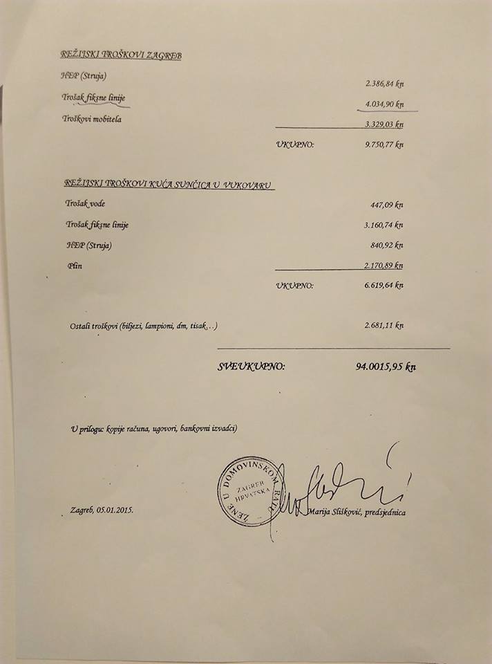 Novaca je bilo, bilo je novaca i za platiti muzičare i ostale izvođaće, kuda su odlazili novci samo Marija Slišković zna. Stotine tisuća kuna leglo je više puta na račun udruge Žene u domovinskom ratu, pod rukovodstvom Marije Slišković.