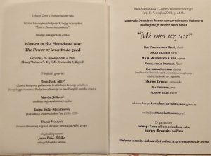 Jelica Sarajlija djeluje kao krhka žena iza koje se krije odlučna osoba u svakom pogledu. Bila je odlučna za vrijeme rata i pomagala našim bojovnicima svim potrebnim medicinskim materijalom, hranom, skupljala pomoć na sve strane, kako bi olakšala ratnicima opstanak na crtama bojišnice. Ono što je imala na početku rata, ima i danas, niti manje niti više, za razliku od Marije Slišković. Ista je situacija i sa gospođom Jasenkom Polić Biliško, nekada aktivna psihologinja koja je vodila važne poslove u bivšoj državi i našoj, danas brine za hrvatsku baštinu, živeći skromno i pošteno. Nisu se obogatile na račun svojih zasluga, već su nas obogatile svojim radom.