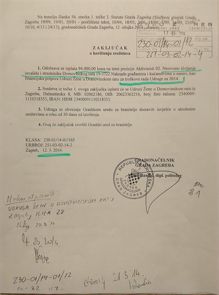 I grad Zagreb i država izdvajali su enorman novac za njenu udrugu. Švaljek i Bandić na osnovu običnih Zaključaka odobravali su novac, plaćena su snimanja dva filma i zbrinjavanje žrtava rata. O čemu ćemo potanko u trećem nastavku ove priče. Drugi film koji se snima, iako nije jasno da li je uopće predočen scenarij i troškovnik filma vlastima grada Zagreba, dobiva novac, a priča je o doktorici Bošnjačko-muslimanske nacije za vrijeme rata u Vukovaru. Scenarij za film napisala je kćer te doktorice?! I to je naravno plaćeno.