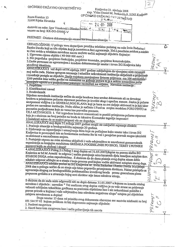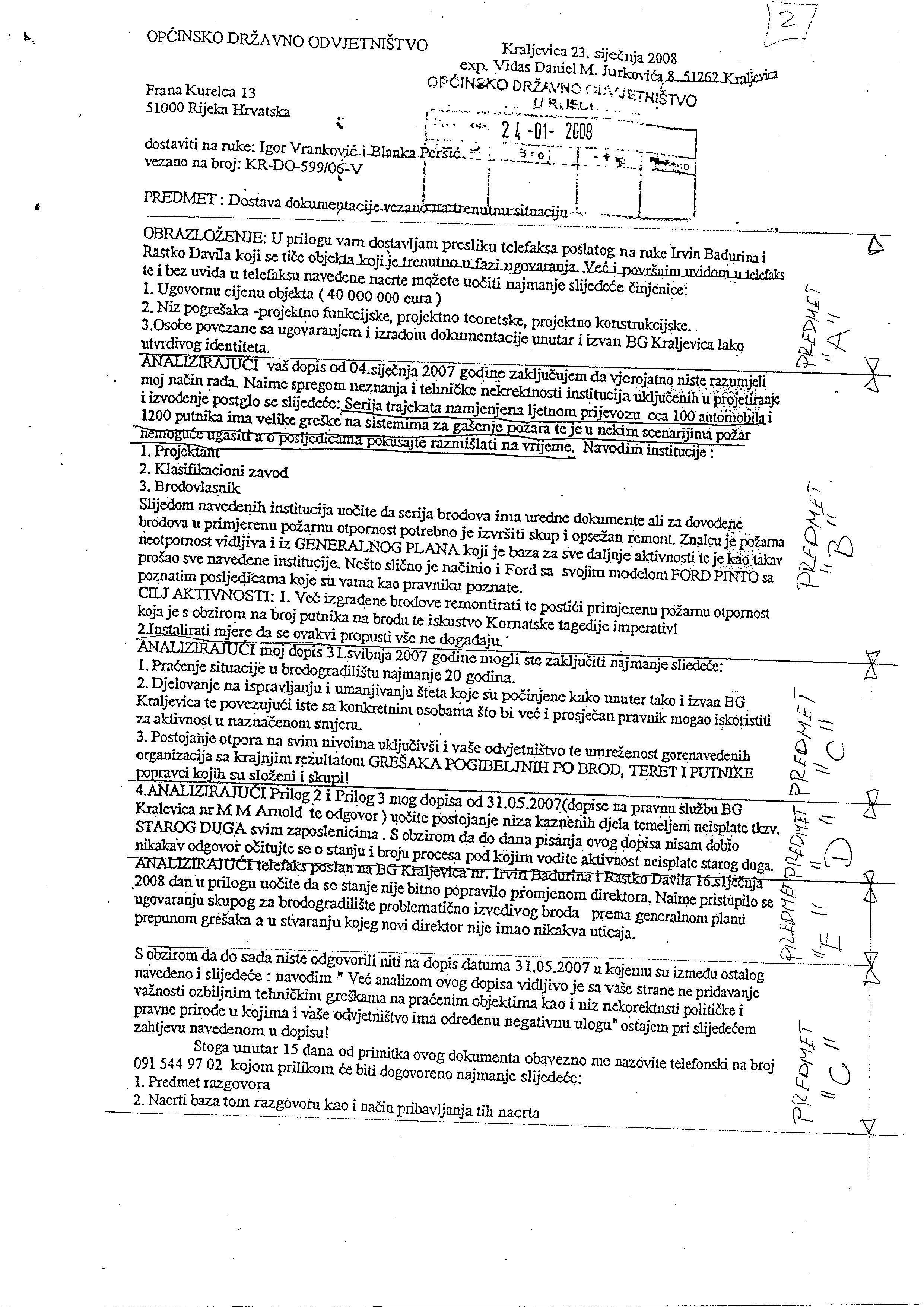 Iz palete svih aktivnosti izdvajam POŽARNU NEOTPORNOST TRAJEKATA KOJA U SADAŠNJEM POLITIČKO SIGURNOSNOM OKRUŽENJU PO MENI IMA APSOLUTNI PRIORITET a sve vidljivo iz jedne stare prijave dane u prilogu.