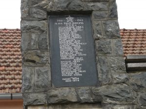 Zanimljivo je da se spomenik podignut poginulim partizanima nalazi svega 20 metara od kuće obitelji pobijene obitelji Šajnović, i jame u koju su bačena njihova tijela. Partizanski spomenik se nalazi direktno ispred zgrade u kojoj je za vrijeme okupacije bila smještena JNA vojska u Bodegraju, naselju u općini Okučani. Taj spomenik naravno nikada nije bio niti taknut, dok je obitelj Šajnović u njegovoj neposrednoj blizini platila životom. Na tom spomeniku je urezano i ime jednog pripadnika obitelji Šajnović (Ivo), a na kraju popisa se nalazi ime izvjesnog Milana Vučinića, s oznakom godina 1950-1974 za koju ne znamo što označava (osim eventualno godinu rođenja i smrti tog M. Vučinića), budući da je taj spomenik bio podignut još 1963. godine u spomen palim borcima NOR-a, a spomenuti Vučinić po tim godinama nikako nije mogao biti sudionik NOR-a, jer se za vrijeme II svjetskog rata još nije bio ni rodio.