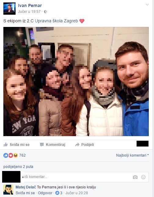 Pernar snima svoju emisiju “Nedjeljom u dva bez Ace Stankovića” – iako nam se na Stankovićevo novinarstvo povraća, nije li ovo malo nastrano? Pernar se prežderava pizzama u Saboru iako postoji saborski restoran i usput vrijeđa koga stigne? Pernar naziva školstvo hadezeovskim (ravnatelji iz SDP-a i HNS-a su med i mlijeko)? Ulazi u škole i potiče školarce na markiranje. Smatra da je najzanimljiviji zastupnik u Saboru i zato može upadati na nastavu i radi kaos u školama? Još više nastrano… I na kraju njegovi ludi sljedbenici pitaju njega na njegovom profilu je li “riješio” ove maloljetnice kraj sebe na slici? Misle poseksao… divno je to čitati njihovim roditeljima…