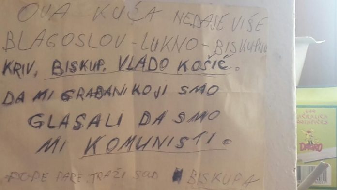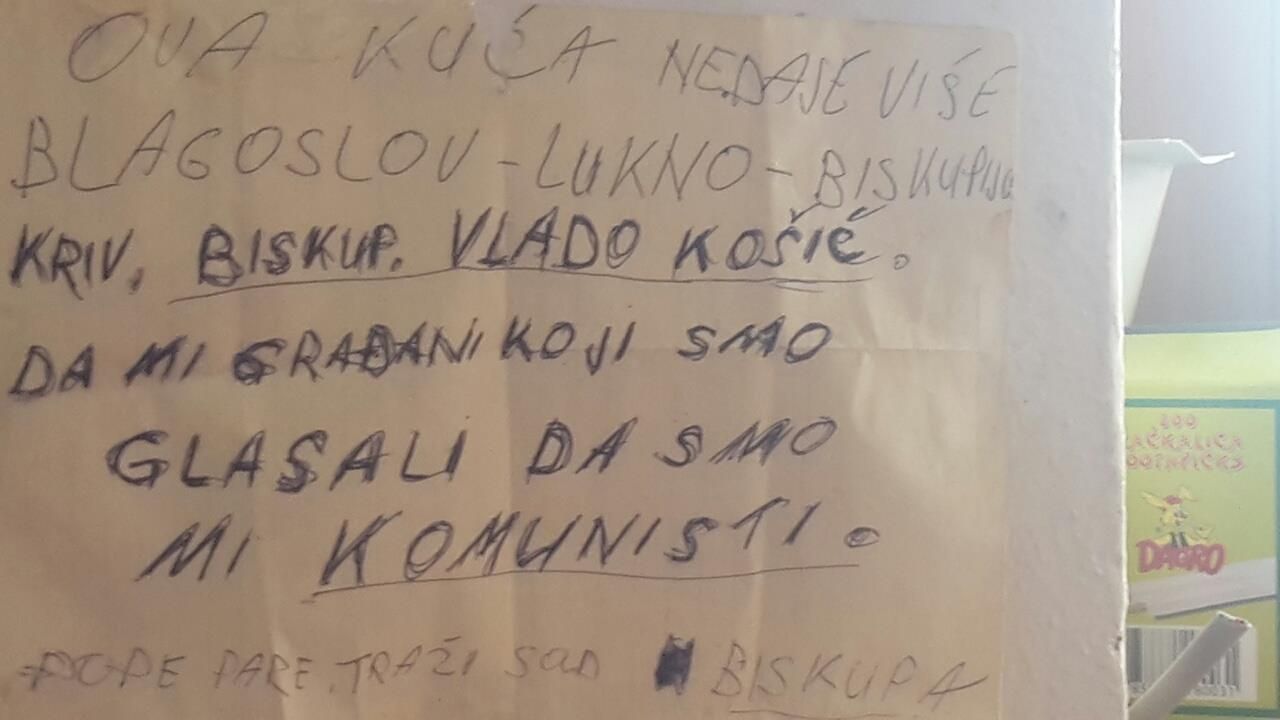 U vrijeme dijeljenja blagoslova po domovima, jedan je SDP-ov birač napisao na svojim ulaznim vratima kuće poruku svećeniku u kojoj mu poručuje da ne želi da mu ovaj udijeli blagoslov jer je po njegovom mišljenju biskup te biskupije SDP nazvao komunističkom strankom. Radi se o selu Gornjim Bogićevcima koje inače spada u Požešku biskupiju u kojoj je biskup mons. dr. Antun Škvorčević, a ne Vlado Košić, kako je protestno navedeno u poruci.