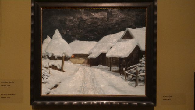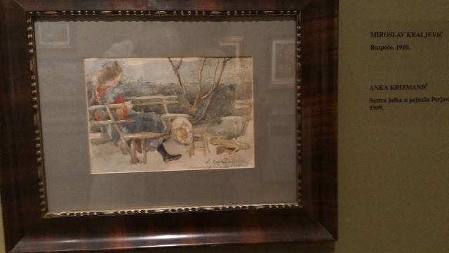 Posjetitelji će se sigurno radije zadržavati na lijevoj strani Paviljona i diviti se djelima ranijih datuma koja su tamo izložena, i u tome imaju pravo. Želim posebno istaknuti dva mala briljanta ove izložbe; akvarel Anke Krizmanić koji prikazuje njezinu sestru Jelku u vrtu iz 1908. godine i Kraljevićevu malu sliku Raspelo iz 1910. godine. Prva govori o profinjenom kolorizmu intimističkog slikarstva, prizora naslikanog u vrlo zahtjevnoj tehnici akvarela, a druga o doista rijetkoj sakralnoj temi iz Kraljevićevog opusa. Slika koja će mnoge ostaviti bez daha je sigurno portret starice Bele Čikoša Sesije, ali i prizori mora i valova na slikama Medovića i Mencija Clementa Crnčića, kao i Bukovčevi portreti žena i djevojaka.