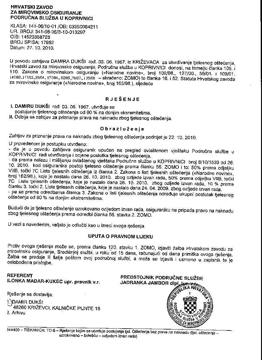 Napominjem kako je već to drugi puta u roku od godinu dana da mi HZMO područni ured u Koprivnici plijeni cijelu mirovinu ,te me stavlja u neugodan položaj ,odnosno bez novčanih sredstva.