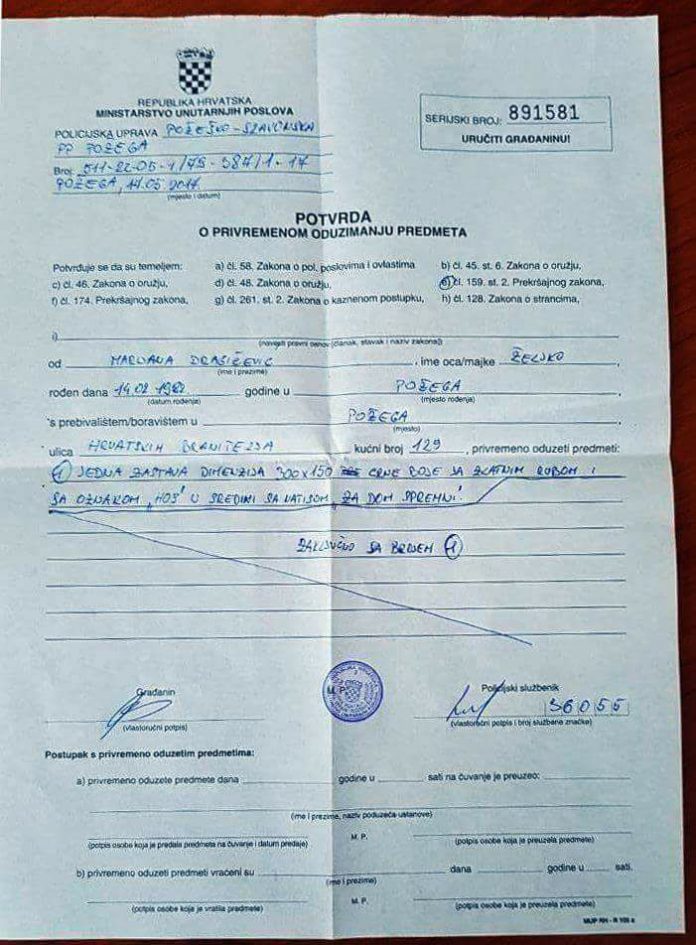 Iz ova dva policijska zapisnika jasno se vidi da su policajci prekršili Ustav, nepovredivost doma, privatni posjed, oduzeli s privatnog posjeda tuđu imovinu za koju se baš ničim ne može dokazati da su stvari s kojima je počinjeno neko kazneno djelo i time napravili opasan presedan ugrožavanja osnovnih ljudskih prava, zakona i samog Ustava.