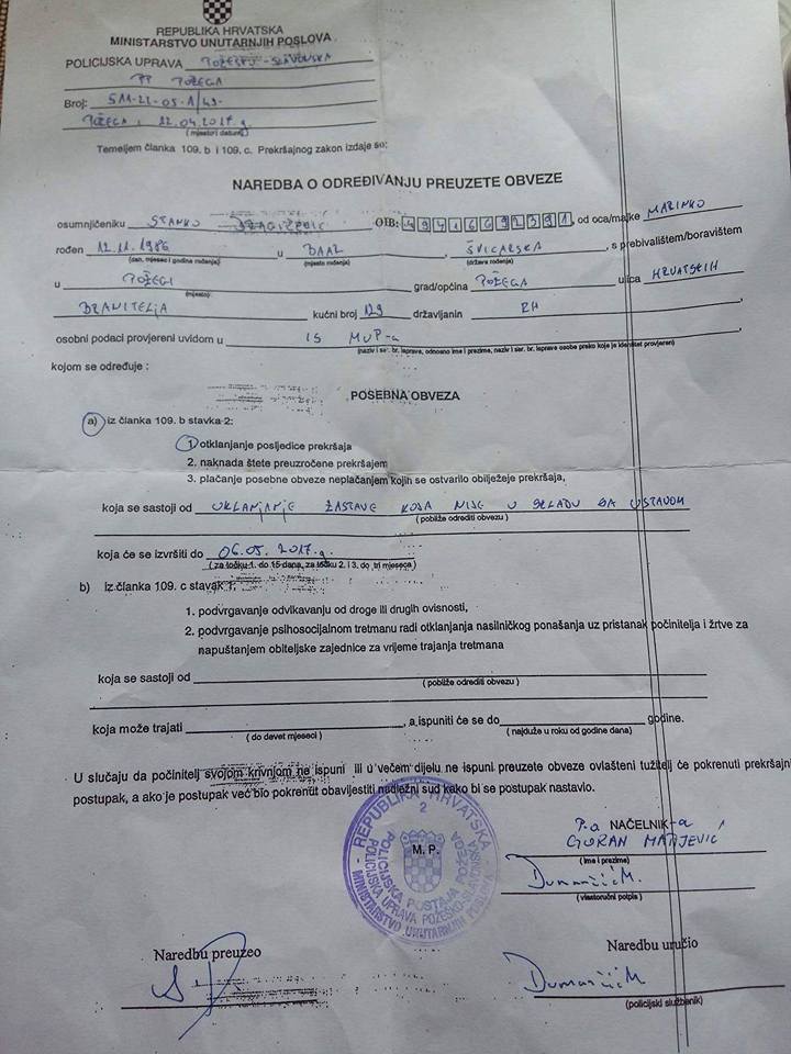 Oduzimanjem zastave HOS-a i Hrvatske zastave Stanku Dragičeviću bez valjanog zakonskog razloga je zlouporaba položaja i ovlasti policijskih službenika. Pozdrav “Za dom spremni” na sudu je obranjen u slučaju Markeš, Mihajlović i Keleminec, te se ne tretira kao ustaški pozdrav, što znači kako su suci to sudskim odlukama potvrdili, precizno ne postoji niti jedna zakonska stavka gdje piše da je taj pozdrav zabranjen, baš kao što ne piše nigdje da su zastave Hrvatske i HOS-a zabranjene i time su policajci prekršili svoje ovlasti provodeći medijske zapise Jutarnjeg lista ili 24 sata, a što je nedopustivo. U ovom trenutku ovo je opasan prekršaj požeške policije koja umjesto da provodi zakon, provodi partijsku politiku.