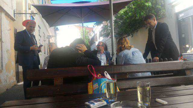 Miro Bulj u krčmi Pod starim krovovima u Basaričekovoj ulici, kraj Sabora provodio je vrijeme u stanci Sabora. Grmoja, Sladoljev, Bulj i na trenutak Petrov sjedili su na terasi kafića, dok se S. Culej smjestio unutar kafića.