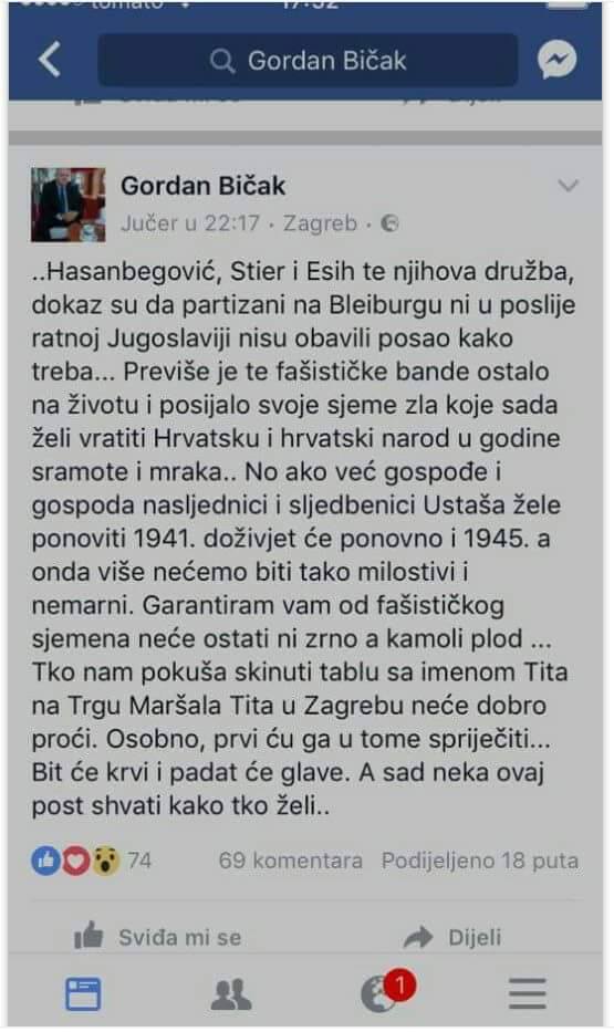 Bičak dosta gostuje po lokalnim televizijama i onim više ljevici sklonim u zadnje vrijeme i očito mu se daje prostor s razlogom. Ovaj slučaj podmetanja teksta ima za cilj diskreditaciju, ako je njemu za vjerovati, dok druga strana sumnja u cijelu priču, jer se u nekim sudskim postupcima pokazala i druga strana medalje.
