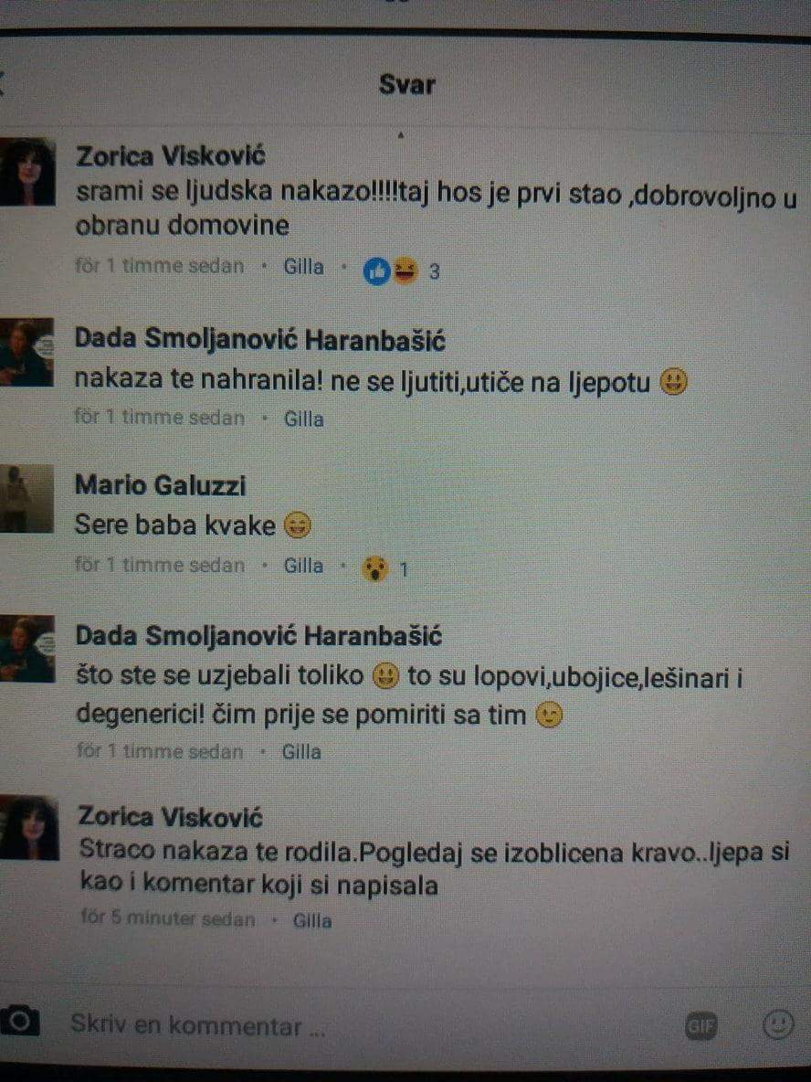 Na njihovo istrebljenje poziva i izvjesna Dada S.H. što je vrlo slična retorika pomahnitalog dalamatinca iz Tisnog koji bi klao biskupa Košića. Klanjem i istrebljenjem oni bi vodili demokraciju sličnu Titu 1945. godine. Inače ona bi istrijebila hosovce, znači ubijala ih, a njih naziva ubojicama i lopovima. Čeka se reakcija policije…