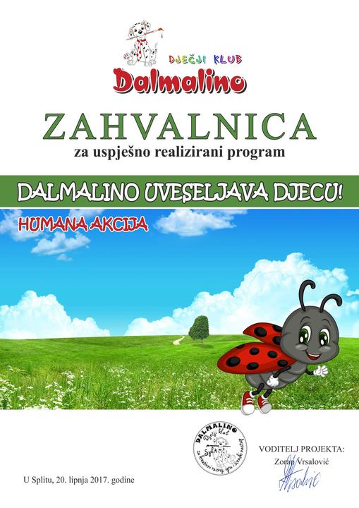 HVALA VAM  HOP portal NA sudjelovanju i potpori projekta „DALMALINO UVESELJAVA DJECU!”, za mališane na liječenju u bolnici Koji SMO ovog proljeća uspješno održali u suradnji s udrugama, centrima, klubovima, institucijama, medijima u Puli i Šibeniku.