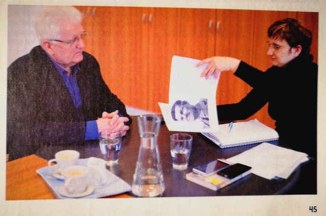 Mr. Babić otvara spomenutu knjigu na stranici s crno-bijelom fotografijom.