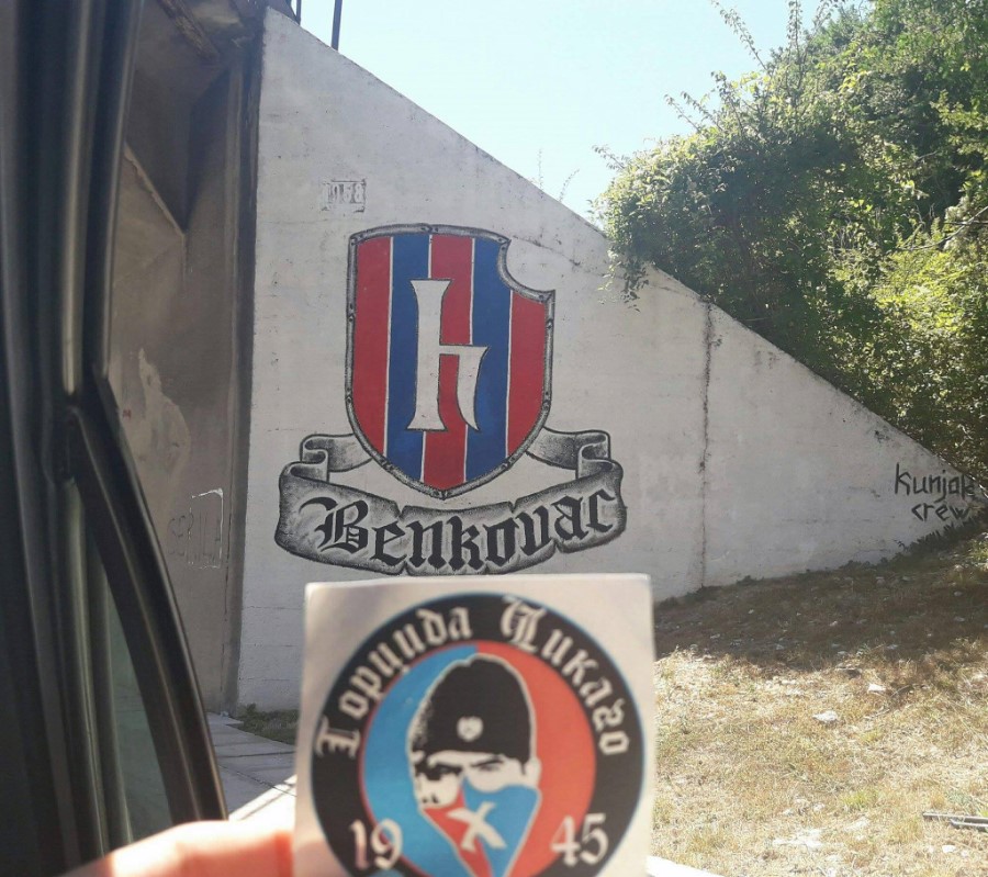 Jedna od fotografija uz koju su ćirilicom napisali: „Divan dan u Benkovcu, temperatura je oko trideset stupnja Celzija, puše sjeverozapadni vjetrić i Torcida Čikago 1945 patrolira.“, nastala je i na ulazu u Benkovac, a objavljena je u nedjelju, 16. srpnja ove godine.