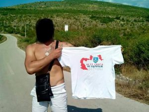 Tako je jedna od objavljenih fotografija i ona nepoznatog muškarca s uzdignuta tri prsta, nastala jučer u Biogradu na Moru, pokraj Torcidinog murala kod pošte posvećenog vukovarskoj i škabrnjskoj tragediji, uz popratni komentar „Biograd namoru“ (sudeći po priloženom i lokaciji to je zacijelo ovaj naš).