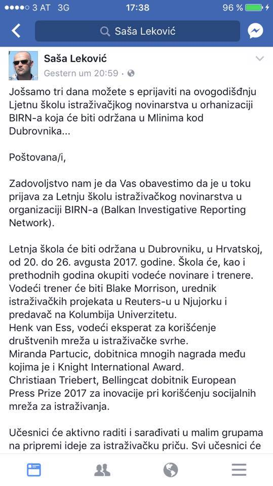 Šef HND-a Saša Sale Leković sin JNA oficira pokazao je na svom profilu svu raskoš srpskog jezika i ekavice. Koliko je jadno da ovaj promašeni lik vodi novinare toliko je jadno ovakvo ponašanje. Koliko se god trudio biti veći Srbin od onih preko Drine, teško da bi kod njih bio toliko značajan. Hrvatski dio teksta ovaj bauštelski novinar gore je napisao od krovopokrivača, srpski tekst bolje natuca ili kopira.