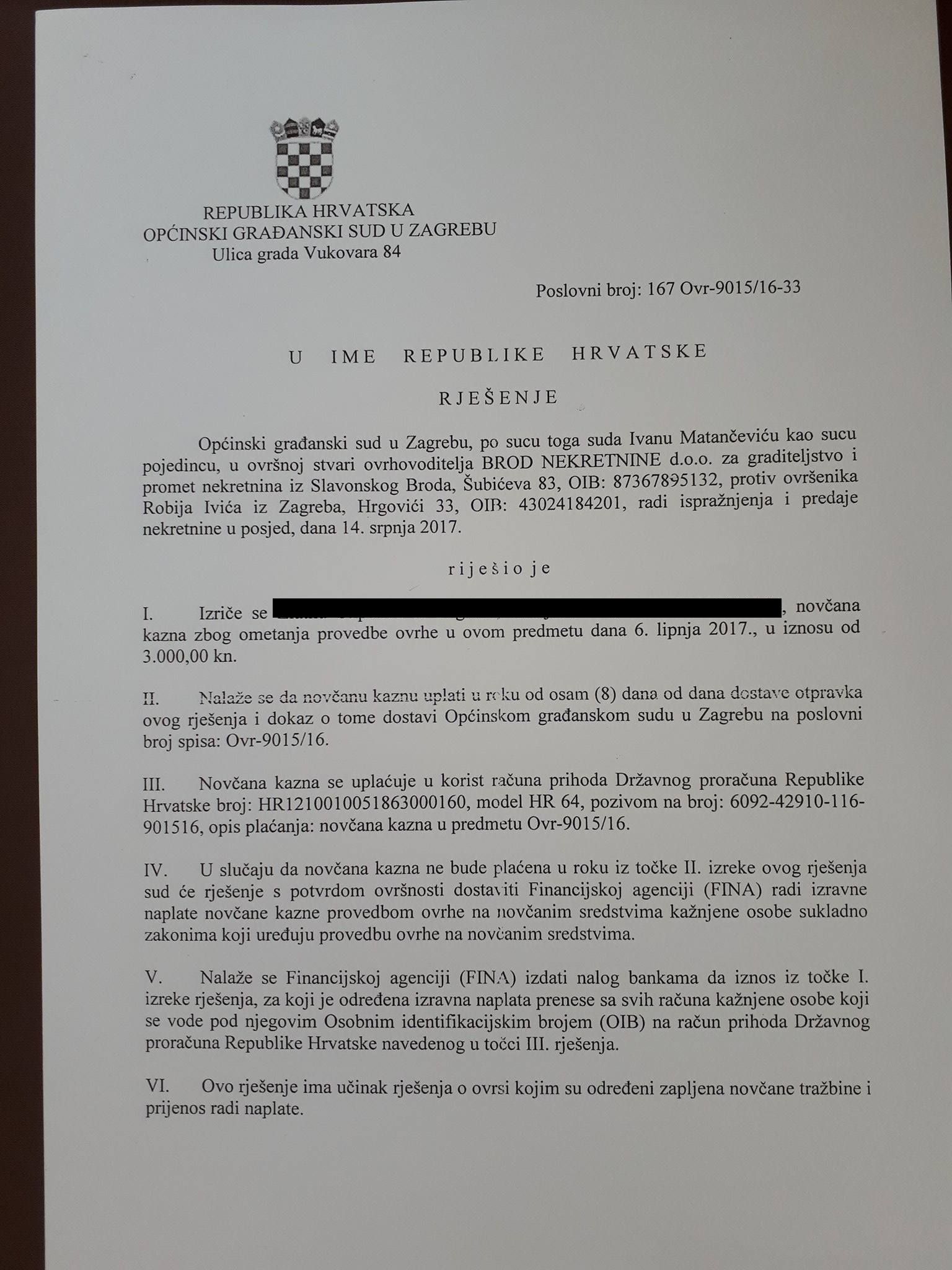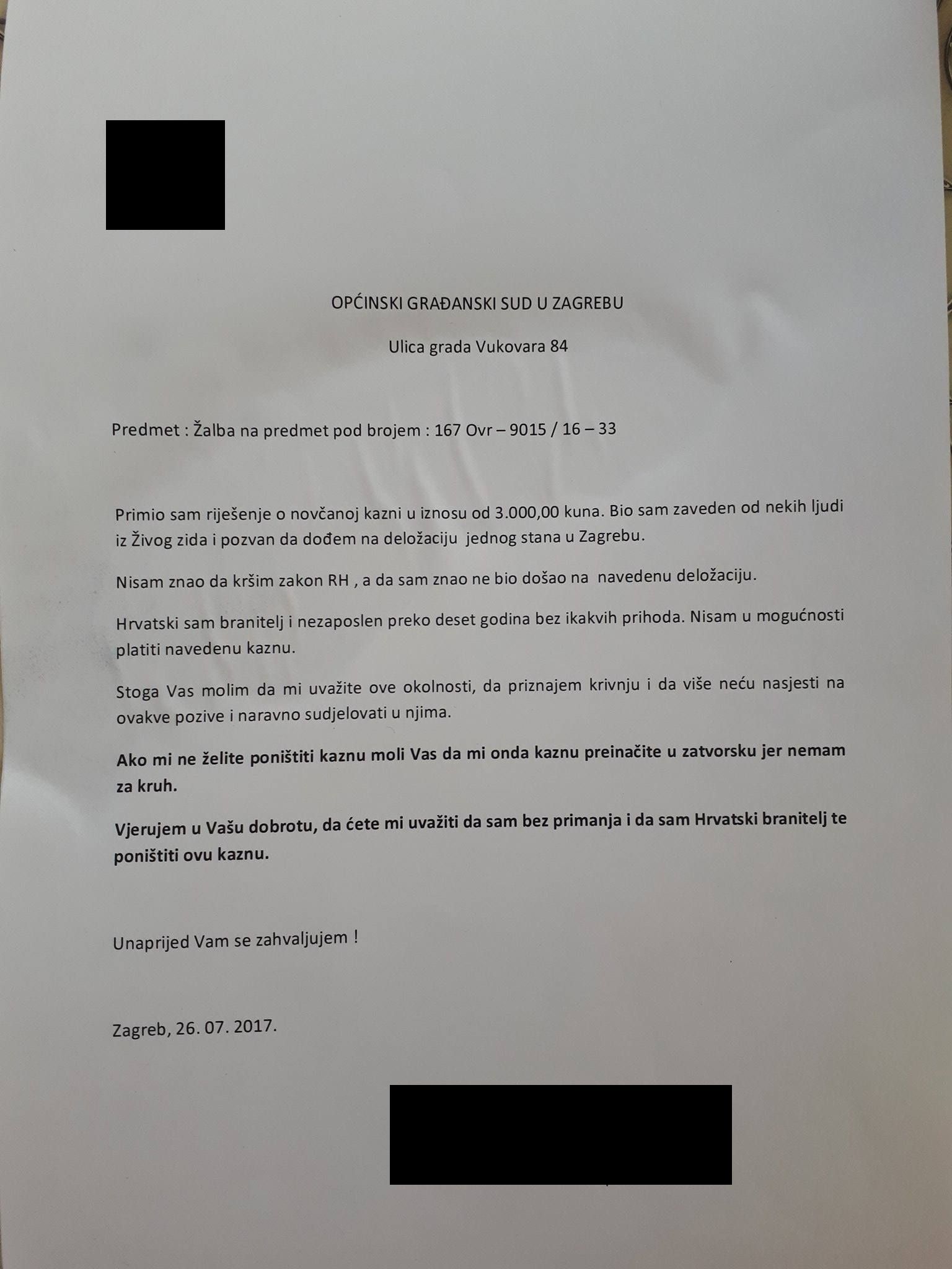 U primjeru kojeg donosimo radi se o ometanju deložacije koje je organizirao Živi zid kao saborska stranka, odnosno njegovi masno plaćeni predstavnici i saborski zastupnici Ivan Pernar, Ivan Vilibor Sinčić i Branimir Bunjac. Kako oni plaćaju kazne koje dobivaju nakon ometanja deložacija (i da li ih uopće dobivaju) nije nam poznato, poznato nam je samo da njihovi “suborci na poprištu deložacija”, pa i sami ovršenici koje se deložira, plaćaju strahovito velike iznose za ometanje deložacija, a kako sami najčešće nemaju nikakovih primanja, dobivaju i ovrhe kojih se nikako ne mogu riješiti. U ovom konkretnom slučaju se radi o branitelju koji nema nikakvih primanja, živi na rubu egzistencije, a sada se od njega traži da plati čak 3.000 kuna! On je u svojoj žalbi na sudsku presudu priznao da ga je zavela živozidaška ideologija. Čovjek je priznao svoju krivnju te zamolio sud za brisanje kazne jer nema nikakvih mogućnosti platiti kaznu, ili pak za preinačenje kazne iz novčane u zatvorsku. Da su Pernar i njegova pokvarena ekipa ikada imali namjeru pomoći ovršenicima, pa i svim onima koje su iskoristili na tzv. “obranama deložacija” u svoje promotivne svrhe, do sada bi uzeli i nekog odvjetnika koji bi pro bono za članove Živog zida koji dolaze “braniti” ljude od deložacije odradio i posao na sudu, te ih zaštitio. Ovako se živozidaški saborski zastupnici kupaju u lovi i ljetuju na moru, a njihovi “korisni idioti” za to vrijeme plaćaju visoke novčane kazne i dobivaju ovrhe za svoju lojalnost velikom vođi i kormilaru broda luđaka Pernaru. Dok se ljudi bore sa ovrhama i kaznama zbog tog prevaranta, Pernar veliča Jugoslaviju i socijalizam na svojem kretenskom videu u kojem ga se može vidjeti kako se zadovoljno “toča” u moru (Supetar na Braču).