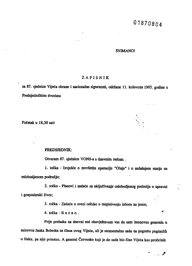Razgovor Šuška i Tuđmana jasno pokazuje paniku hrvatske strane poslije Oluje, jer zaključuju da nekontrolirano muslimani rade zločine. Kome na štetu? Naravno tada Hrvatima, jer pokvarena svjetska zajednica ne želi vidjeti istinu, iako je UN jasno označio hrvatske snage kao korektne, a 5 korpus kao divlju hordu bez kontrole. Danas se svi zločini nad Srbima pripisuju Hrvatskoj strani iako nema počinioca. Na osnovu čega je Pupovac zaključio da su sve zločine počinili Hrvati ako nema dokaza o počiniocu ? I zašto su se srbi redom predavali Hrvatima, a ne 5. korpusu armije BiH.