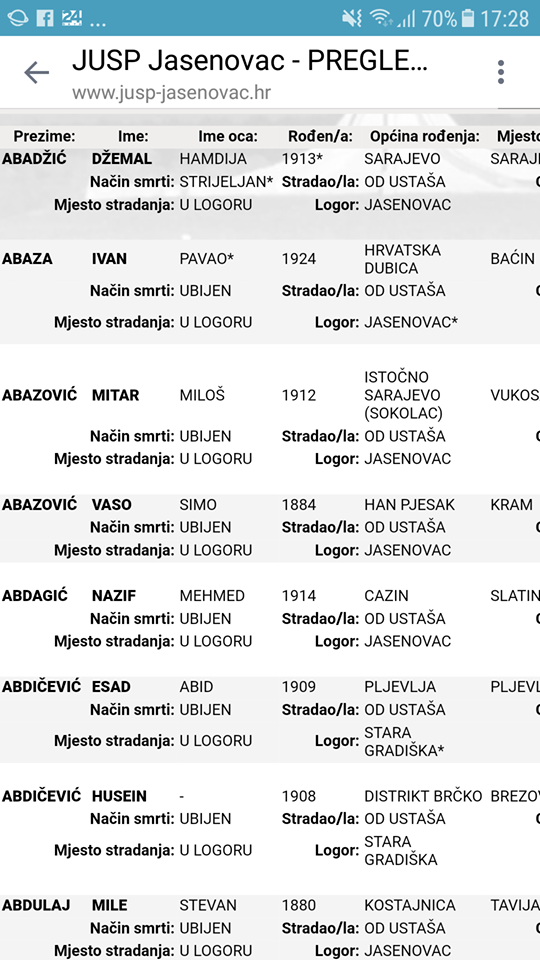 Zato dajemo link na popis žrtava; osobe sa zvijezdicom označene  uglavnom nisu bile u logoru, čak piše i podatak gdje su ubijene; a ako želite unijeti promjene podataka za neku osobu ako smatrate da su krivi, administratori su srpsko-židovski lobiji iz Amerike…