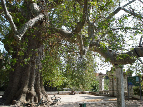 Velika platana u Trstenom je procijenjena na 450 godina starosti. Širine je pet i visine preko 40 metara. Povijest platane je neraskidivo povezana uz povijest Trstenog.