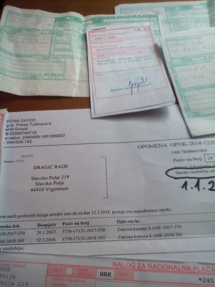 Nakon naše objave teksta o nepravilnostima u općini Gvozd, poglavito u naplati komunalne naknade dobili smo račune u ruke koji potvrđuju kako su nezakonito naplaćeni od strane općinske birokracije.