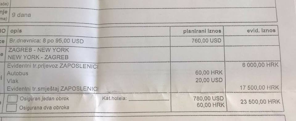 -Ako ste platili porez, sigurno će vas ovo razveselili: 24.000,00 kuna ovog ste ovog mjeseca platili stručnoj suradnici u kabinetu jednog ministra da provede devet (DEVET!) dana na konferenciji u New Yorku. Za ženu niste glasali, nemate pojma kako se zaposlila, zapravo zaposlila se samo dva dana nakon što je ministar preuzeo ministarstvo na plaću od 12.000,00 kn.