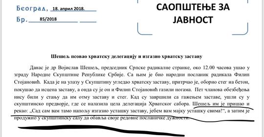 Hrabri četnik Šešelj jučer je napao hrabro zajedno sa svojom svitom četnika zastupnicu srpskog parlamenta A. Jerkov jer je tražila da ratni zločinac se ukloni iz skupštine, jer je obično zločinačko smeće- odgovor četnika je bio- kurvo ustaška