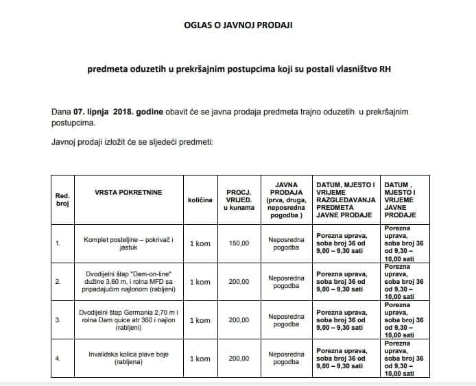 Porezna uprava prodaje invalidska kolica na dražbi oduzeta u prekršajnom postupku.Slijedeće će prodavati proteze?