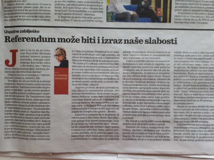 Ovo su naslovi zadnjih par dana u gotovo odurnom Jutarnjem listu, pokušavaju poništiti rezultate referenduma, braneći ustavna prava naroda koji je jedini divlji u regiji. Može li luđe? U zadnje vrijeme konstantno Srbi u Hrvatskoj provociraju, vrijeđaju i preko srpskih Novosti šire mržnju. U zahvalu za njihova divljanja Jutarnji list preko njih “brani ” stav protiv referenduma, a u stvari brani duboke džepove političkih tajkuna. Pravi tajkunski list.