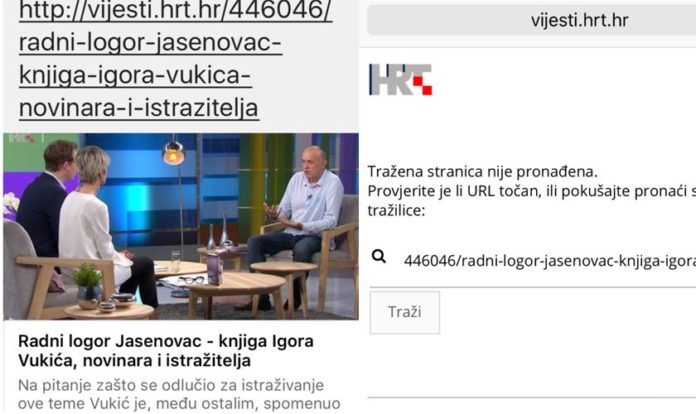 Zahtijevamo vraćanje vijesti o gostovanju Igora Vukića i snimku istoga na HRT-ovu stranicu gdje je bila objavljena.