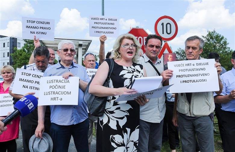 Prosvjed ispred HRT-a: Protiv cenzure, prosvjednici žele istinu o Jasenovcu, dosta je hadezeovskog staljinizma