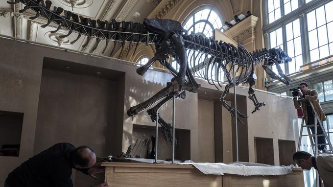 Dinosaur na krovovima Pariza-pisalo je na oglasnim panoima kuće “Aguttes” koja je ostvarila nesvakidašnju aukciju. Skelet teropoda, dinosaura mesoždera starog 150 milijuna godina, prodan je za dva milijuna eura bogatom Francuzu koji želi ostati anoniman. Mjesto aukcije je bilo neobično jer je organizirana na prvom katu Eiffelovog tornja!