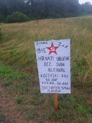 UDBAŠKO KOMUNISTIČKA BANDO NA VLASTI-O KOMU SU SMETALI TRANSPARENTI NA KOJIMA SU OPISANI ZLOČINI KOJE JE POČINILA ZVIJEZDA PETOKRAKA 1945 I 1990 GOD U ŠUMI BREZOVICA?