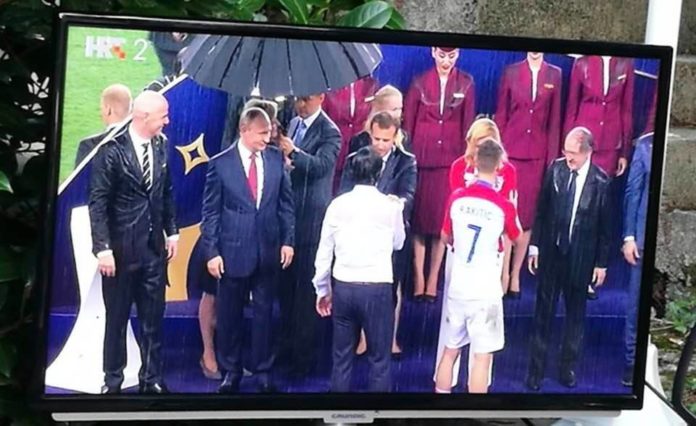 Na samoj podjeli medalja nogometašima u Moskvi predsjednik Rusije ispao krkan prema dami, odnosno našoj predsjednici, koju je ostavio da kisne, a on je sve mirno promatrao pod kišobranom.