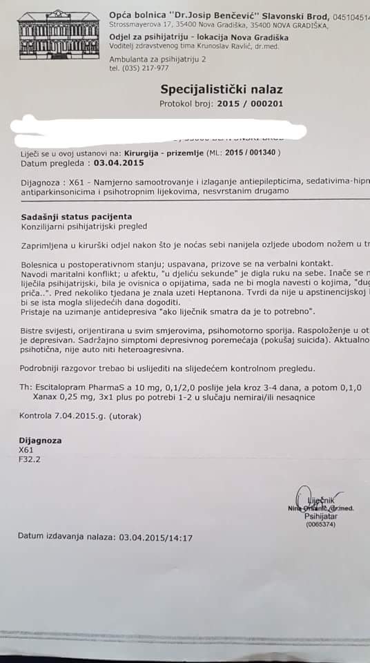 Centar za ovisnosti od nje traži markere na hepatitise i HiV i vec devet mjeseci ih majka ne donosi, upravo iz razloga što i sada ima problema sa opijatima.