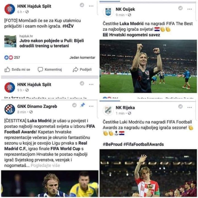 Modriću od klubova nije čestitao Hajduk na tituli najbolje igrača svijeta, a kojeg hrpa bezveznjaka godinama vodi u propast. Ostali klubovi su čestitali veliki uspjeh Modriću, a što je opet  veća promocija za ovu zemlju od naših glupih političara. Oni ga kroz komunističko krivosuđe sude jer je odlučio dati dio love Mamiću, a ne njima, pa su bijesni. Ne voli Tita i partiju pa su još bjesniji. Drugim riječima luđaci koje mi plaćamo.