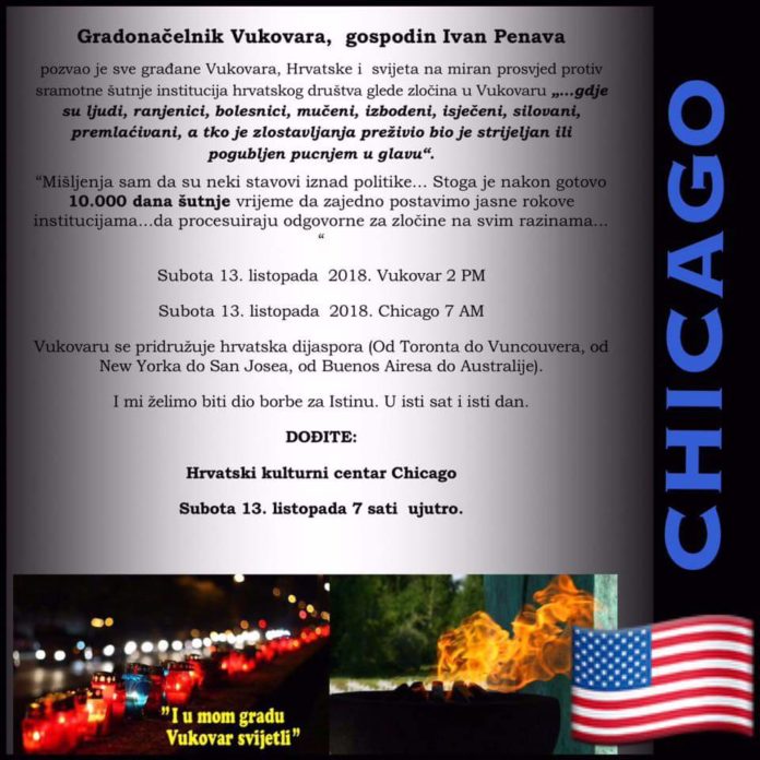Okupljanje Hrvata u Chicagu, SAD, će se održati istodobno sa prosvjedom u Vukovaru.