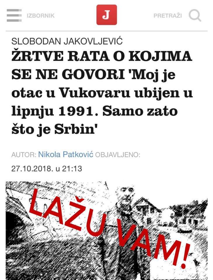 YUtaranji list prije dva dana donio je tekst novinara Nikole Patkovića, u kojem svoju “srcedrapajuću“ priču iznosi izvjesni Slobodan Jakovljević, Srbin iz Vukovara – kojega prikazuju kao “žrtvu rata“…