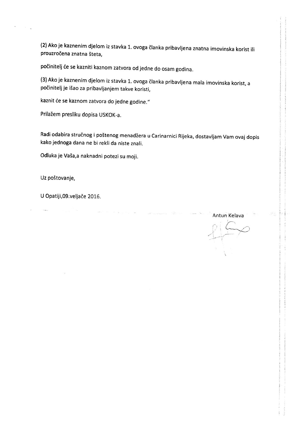 Ovo je radila Carinska uprava, Područni carinski ured Rijeka i nitko ne odgovara za nastalu štetu državnom proračunu zbog nezakonitog postupanja-neznanja jer nikad nisu radili inspekcijske poslove već su svi sudionici postali još veći rukovoditelji 2016. Andrej Ćuković tada voditelj Službe za nadzor postaje pomoćnik pročelnika Područnog carinskog ureda Rijeka. Andrej Franulović tada zamjenik pročelnika postaje pročelnik Područnog carinskog ureda Rijeka.
