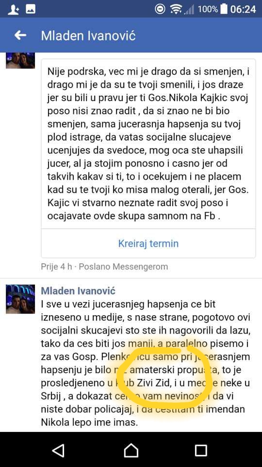 Nakon jučerašnjeg uhićenja dvije osobe za počinjenje ratnog zločina u Vukovaru 1991 godine obratio mi se sin jednog uhićenog (Milan Ivanović zvani Ćićak), pa mi prijeti da će me ponovo prijaviti Andreju Plenkoviću? -piše N. Kajkić i zapravo otkriva da krvoločna ekipa štiti svoje jatake.