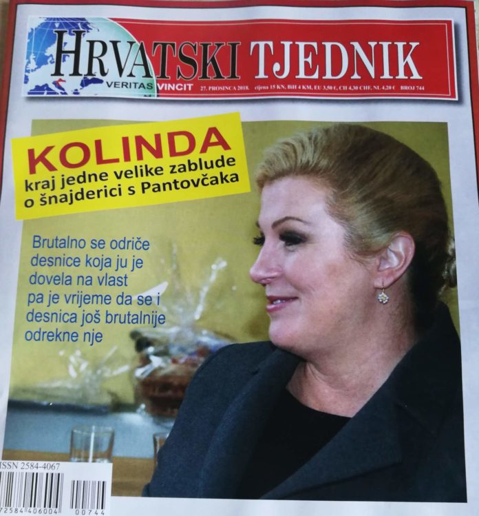 Na drugoj strani drvlje i kamenje Hrvatskog tjednika po predsjednici, na slici naslovnice izgleda odurno, a zaboravljaju da su nedavno svršavali na nju, iako su za vrijeme posjeta Vučića pisali drugačije. Tako je sa njima već dugo, ali njihovo moto je da samo oni pišu istinu, a sve ostalo je manipulacija. Gluplji slogan niti udbaši ne bi mogli složiti.