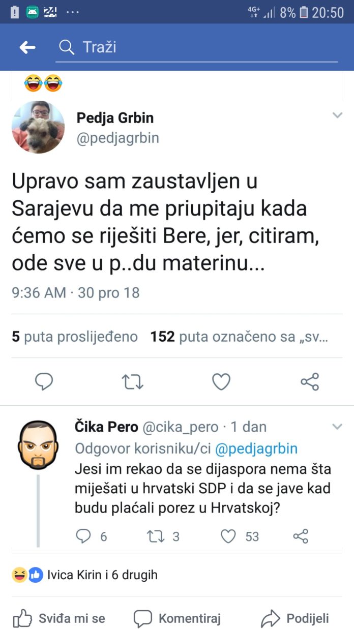 Nikako da shvati Bero pa i Peđa da Hrvati klanja, silovanja i pljačku imovine 1945. baši i ne shvaćaju kao Muslimani i Srbi i ne zovu to antifašizmom…