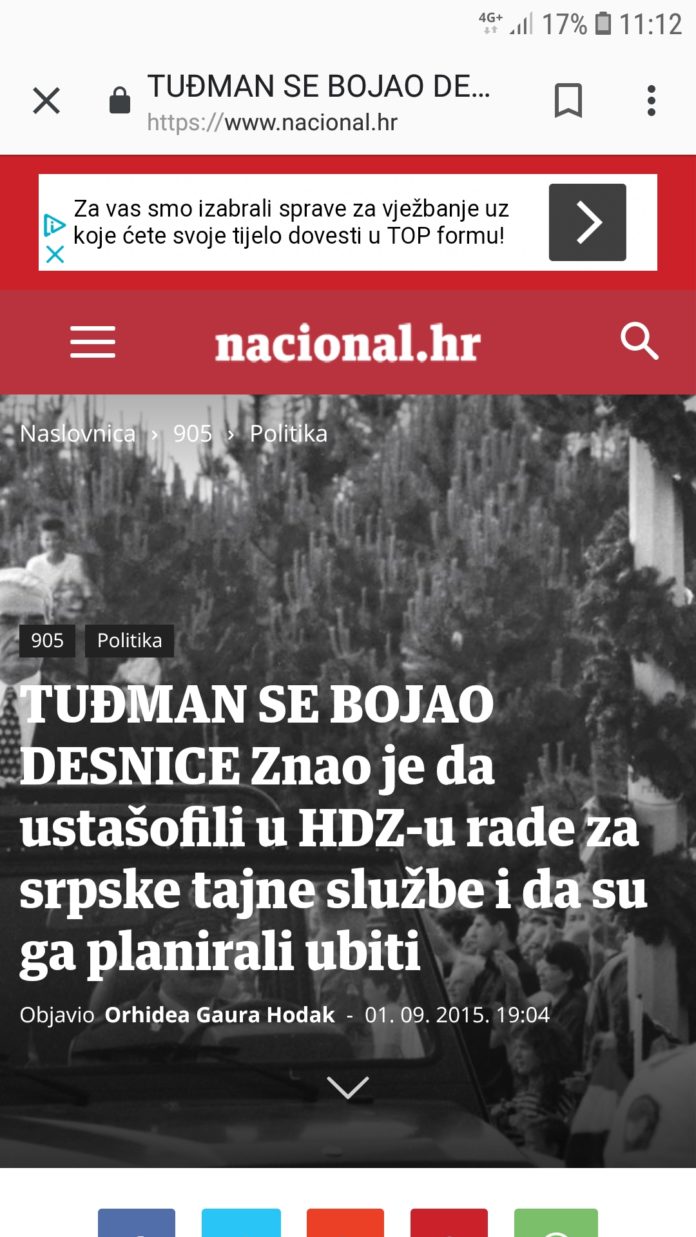 FRANJO TUĐMAN NAJVIŠE SE BOJAO desničara i radikala iz njihovih redova jer je iza njihova djelovanja vidio KOS. Smatrao je da su oni produžena ruka jugoslavenskih tajnih službi kojima je bio cilj mladu hrvatsku državu kompromitirati u samom početku i prikazati je kao nasljednicu Pavelićeve NDH“, rekao je za Nacional jedan od ljudi koji su stvarali HDZ, ali koji se zbog kompliciranih odnosa s današnjim vodstvom HDZ-a u ovom trenutku ne želi javno eksponirati. -piše novinarka Hodak za Nacional.