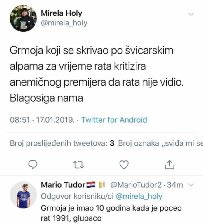 Ono ak je Plenkonja zbrisao u uniju za vrijeme rata ko i prištavi Milanović, Holy je optužila Grmoju da je zbrisao i on dok je ona bila na braniku domovine ili šanku saborskog kafića…