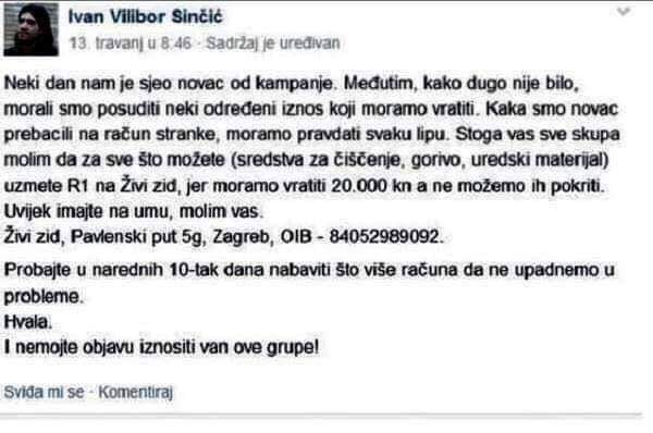 Podsjećamo i na detalj posta (naslovnica) u kojem Slinavčić nagovara ljude na kriminal, obećaje pomoć, a ljigavci nikada nikome nisu pomogli, ali vi ste dragi građani ovim klošarima pomogli da ugodno žive i prodaju vam muda pod bubrege…oni se bore za svoj ugodan život, a njihovi roditelji rade na visokim položajima u državnim službama… Nakon svega po namještenim istraživanjima raste im rejting…