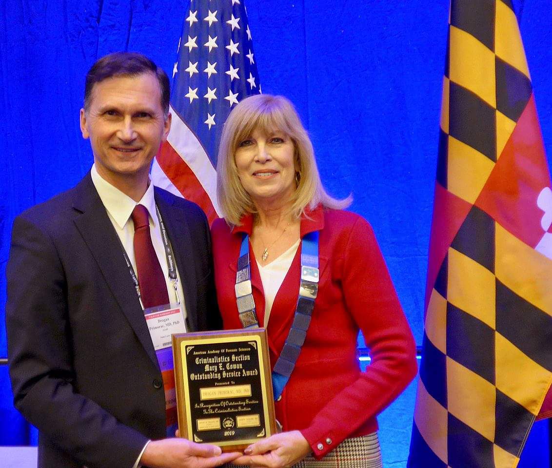 Baltimore, 21.veljače 2019. Odlukom Predsjedništva Američke Akademije za forenzične znanosti, jedna od najprestižnijih nagrada Akademije “Mary E. Cowan Outstanding Service Award” dodijeljena je prof.dr. Draganu Primorcu. U svom obrazloženju Odbor za dodjelu nagrade Akademije ističe da se ovogodišnja nagrada dodjeljuje prof.dr. Primorcu za izvrsnost, međunarodnu prepoznatljivost i golemi doprinos razvoju forenzičnih znanosti u svijetu.