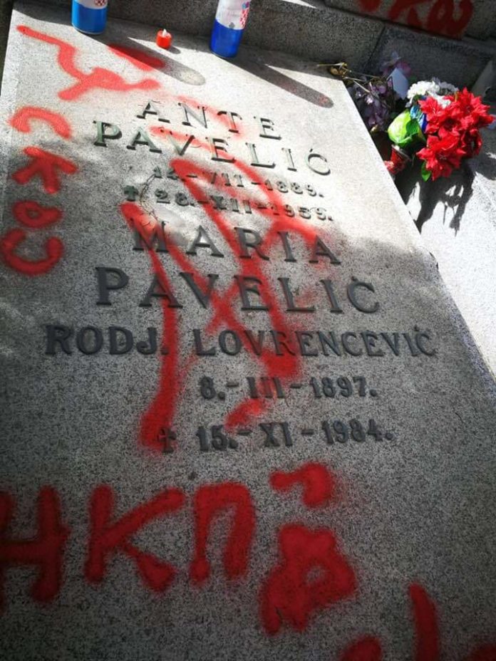 U svome bijesu nasljednici koljača Tita pošarali su grob Ante Pavelića ćiriličnim grafitima.