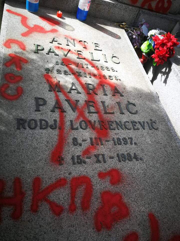 Na ćirilici napisani grafiti u čast komunjara na grobu Ante Pavelića
